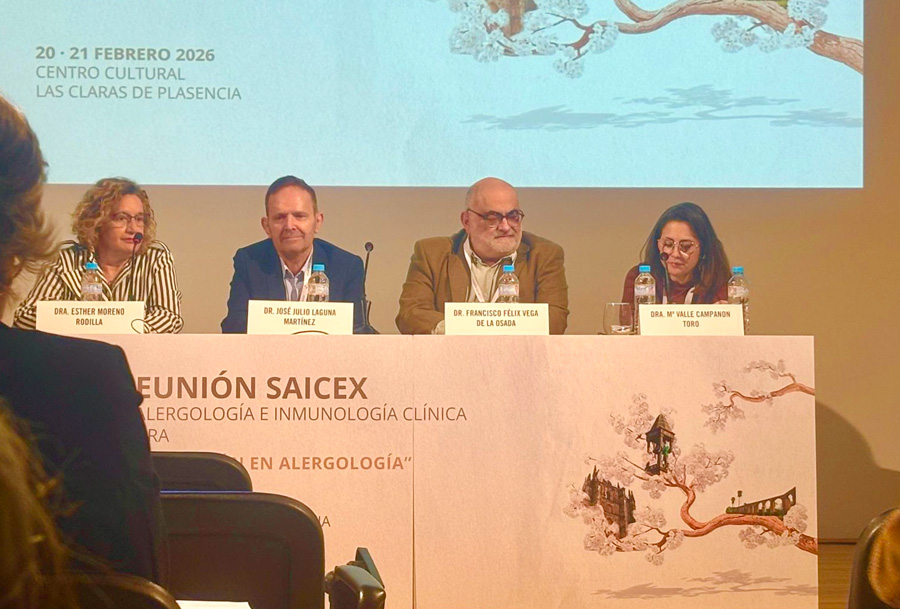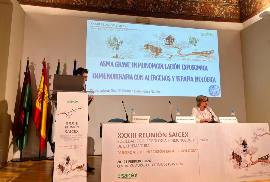 La XXXIII Reunión Anual de la Sociedad de Alergología e Inmunología Clínica de Extremadura (SAICEX) se celebró los días 20 y 21 de febrero de 2026 en Plasencia, consolidándose como el principal encuentro científico de la alergología extremeña.